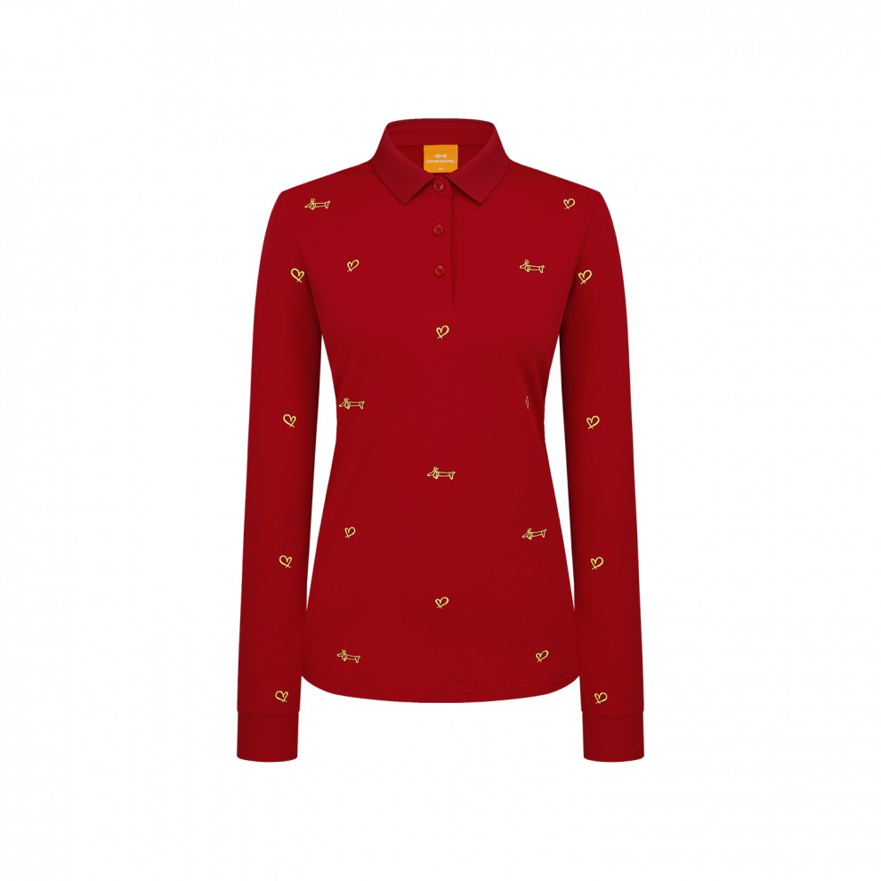 HOME > WOMEN > 티셔츠 > 긴팔 > 여성 왕관 꼬마 닥스훈트 전판 자수 긴팔 카라티 7LDTS933R